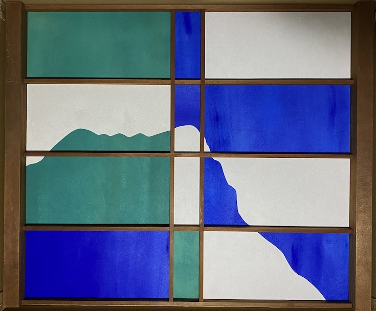 障子 吹寄 青と緑 08-04-25 La montagne Sainte- Victoire, shoji au damier bleu et vert